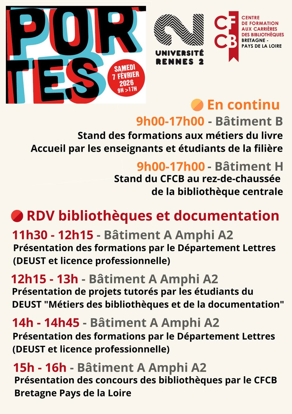 Le 7 février, le Centre de Formation aux Carrières des Bibliothèques vous ouvre ses portes.